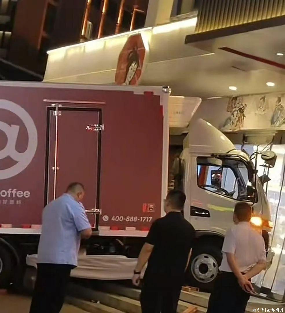社交平台上流传着多条事发视频,其中一个监控画面显示,8月6日晚上6:36左右,一辆车身印有“库迪咖啡”字样的货车撞向了一家茶颜悦色门店,不少市民试图合力将货车挪动,但无法挪动,当日稍晚,警方、消防人员等来到现场,货车也被围挡起来。