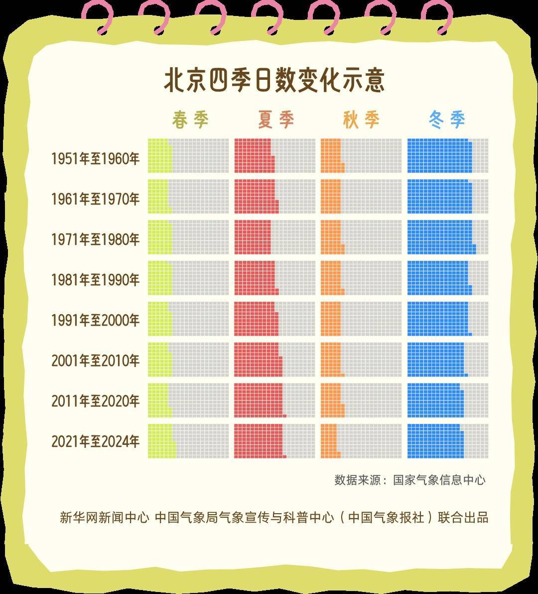 r来自国家气象信息中心的大数据显示,以北京为例,20世纪50年代秋季平均长达53天,而2012年至2024年的平均值已缩短至42天左右。