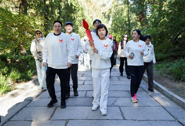 ▲巴中光雾山“红叶火炬”在北京香山公园内传递